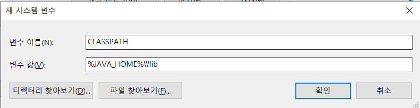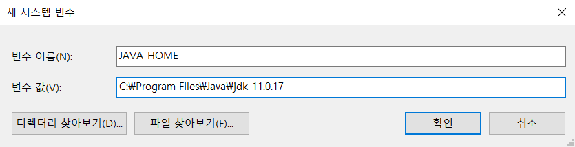 4. 변수이름은 직접 작성, 변수 값은 직접 작성 혹은 디렉터리 찾아보기를 통해서 입력한다.