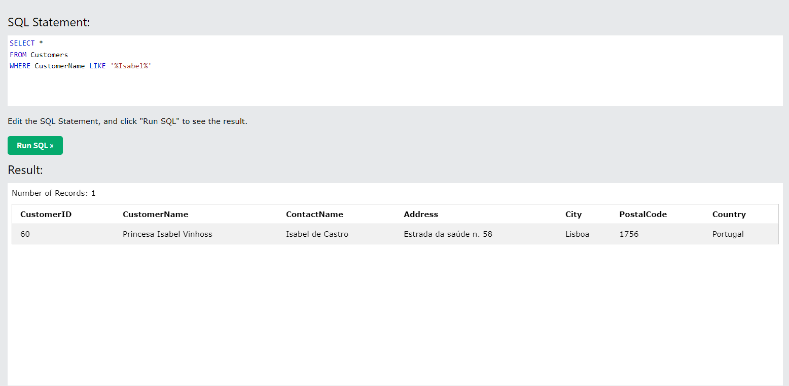 - 'a'로 시작하며 'o'로 끝나는 customerName을 조회한다.