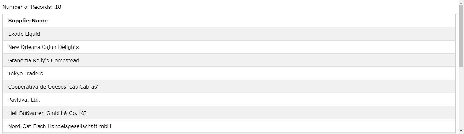 - Suppliers에 저장된 각 행을 Subquery와 비교 후 조건에 일치한다면 레코드 반환, 일치하지 않는다면 다음 행으로 넘어간다.