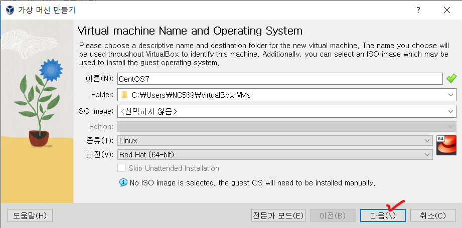 ㆍ 이름에 CentOS7을 입력한다.