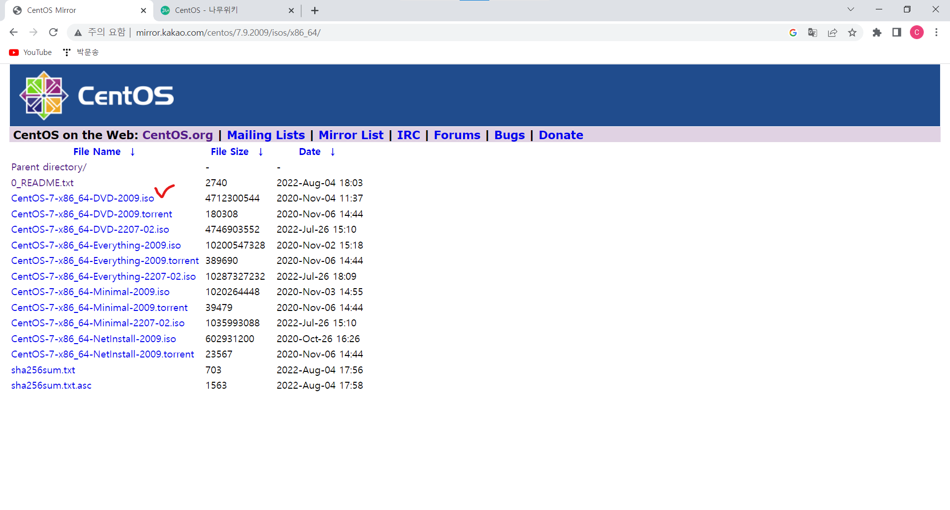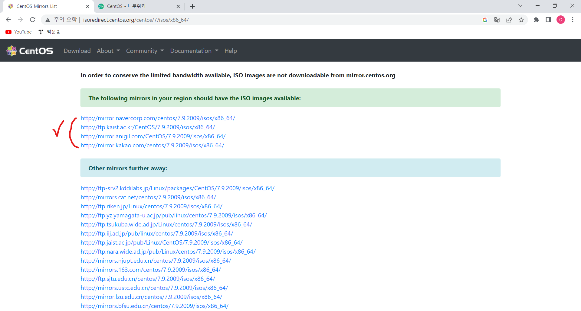 ㆍ iso File들을 다운받을 수 있는 여러 경로들이 제공되며 표시된 4개의 경로 중 아무거나 1개를 선택한다.