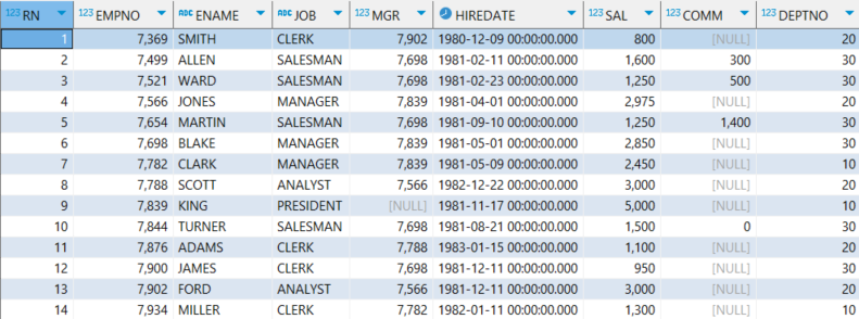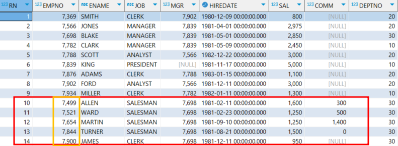ROW_NUMBER() OVER(ORDER BY EMPNO) AS RN,